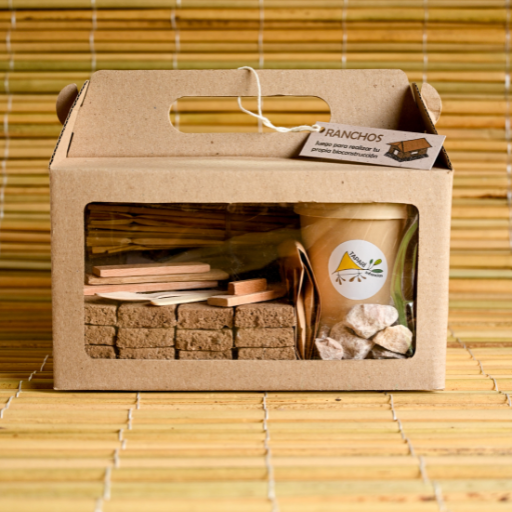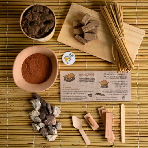 Este kit contiene todos los materiales esenciales para la construcción y decoración manual de una escena de rancho o casa tradicional de campo, utilizando la técnica de adobes. Es una versión más compacta y portátil.